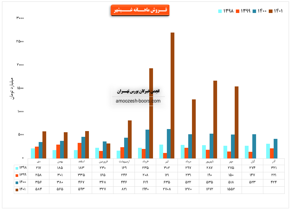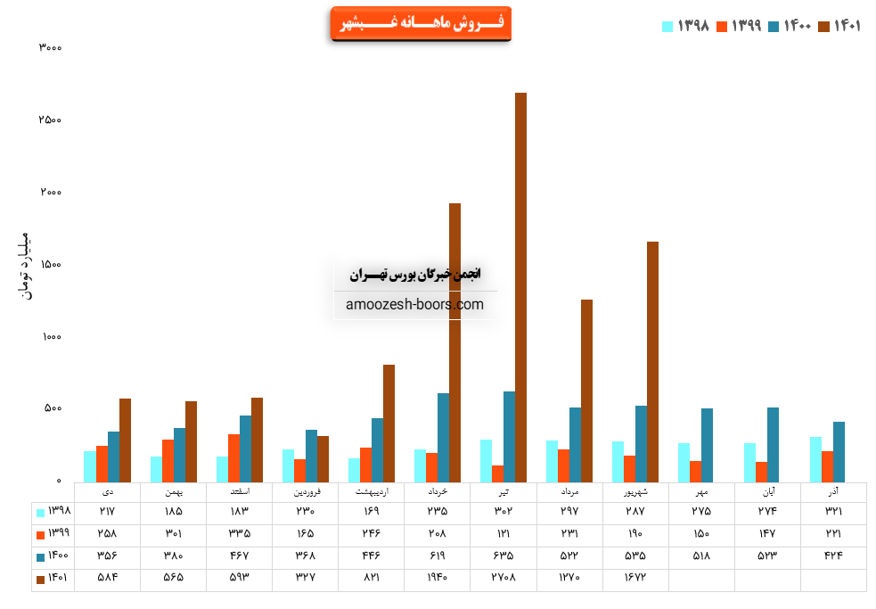 فروش نماد غبشهر: 10466 میلیارد تومان که نسبت به دوره مشابه گذشته 142% افزایش یافته است.