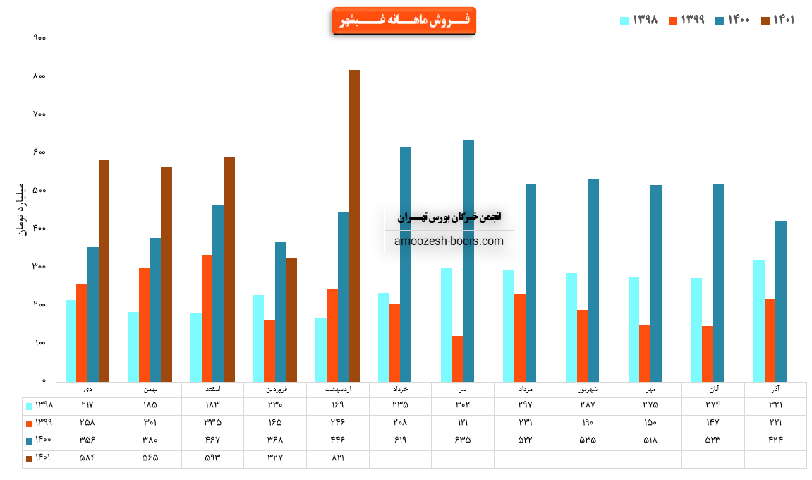 فروش نماد غبشهر: 4815 میلیارد تومان که نسبت به دوره مشابه گذشته 82% افزایش یافته است.