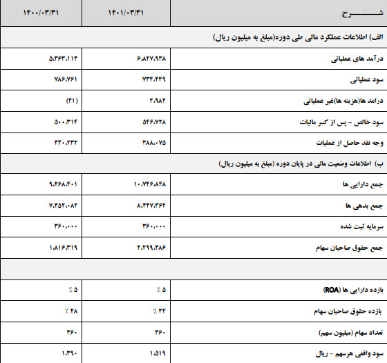 سود خالـص هر سهم: 3598 ریال که نسبت به دوره مشابه گذشتــه  42% افزایش   یافته است.