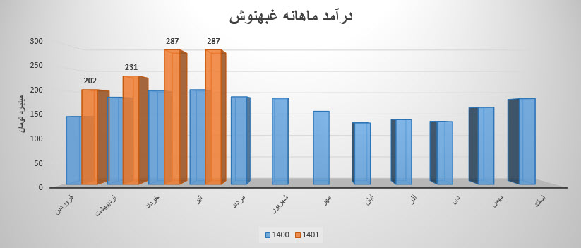 نماد غبهنوش نسبت به دوره 1 ماهه مشابه سال قبل 25% افزایش درآمد داشته است.