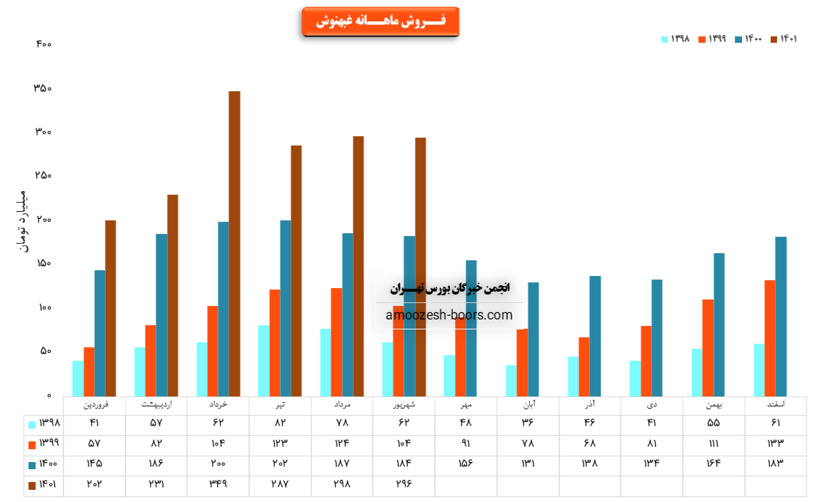 فروش نماد غبهنوش: 2007 میلیارد تومان که نسبت به دوره مشابه گذشته  72% افزایش   یافته است.