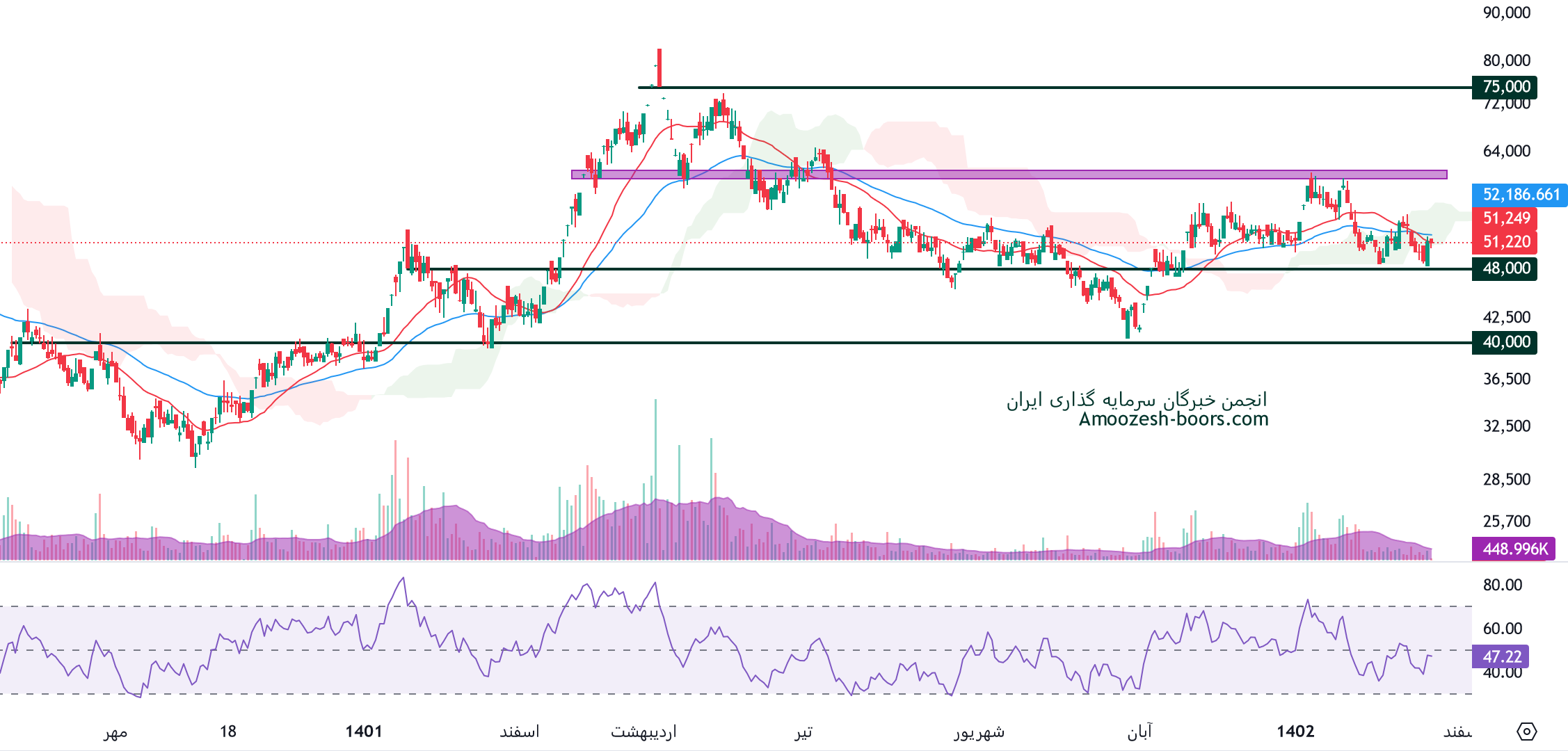 در صورت متعادل شدن جو بازار قیمت پتانسیل برگشت داشته که در این صورت مقاومت های غدام به ترتیب 60000 و 75000 ریال در نظر گرفته خواهند شد.
