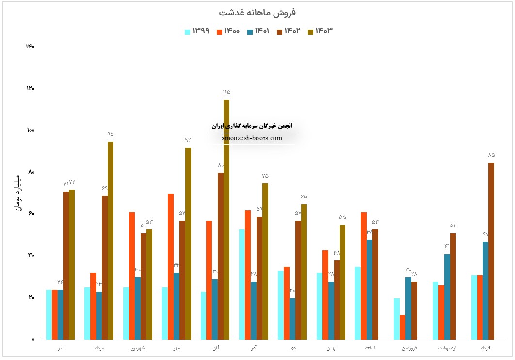 نماد غدشت در آبان ماه حدود بیش از 1600 تن از محصولات خود را به فروش رساند که این میزان در مقایسه با حجم فروش ماه گذشته 14 درصد افزایش پیدا کرده است.