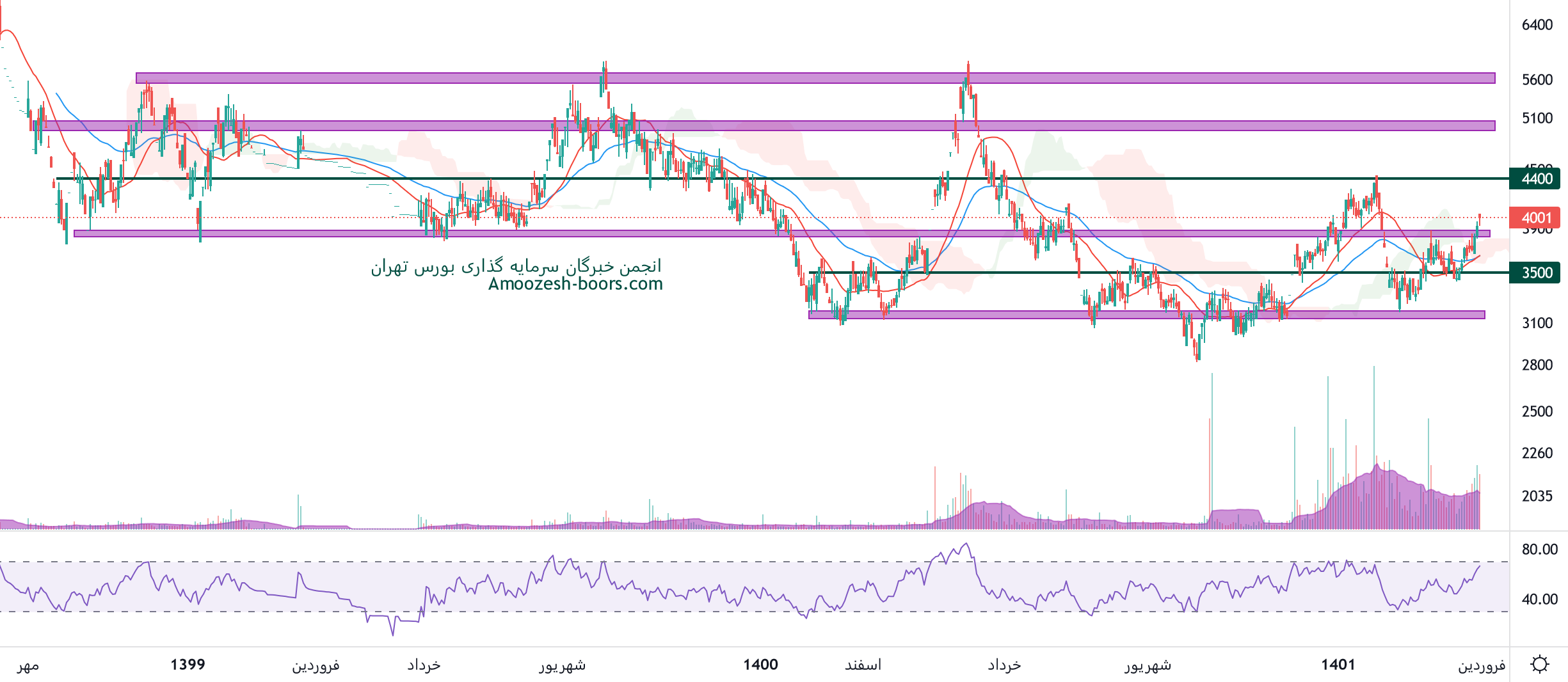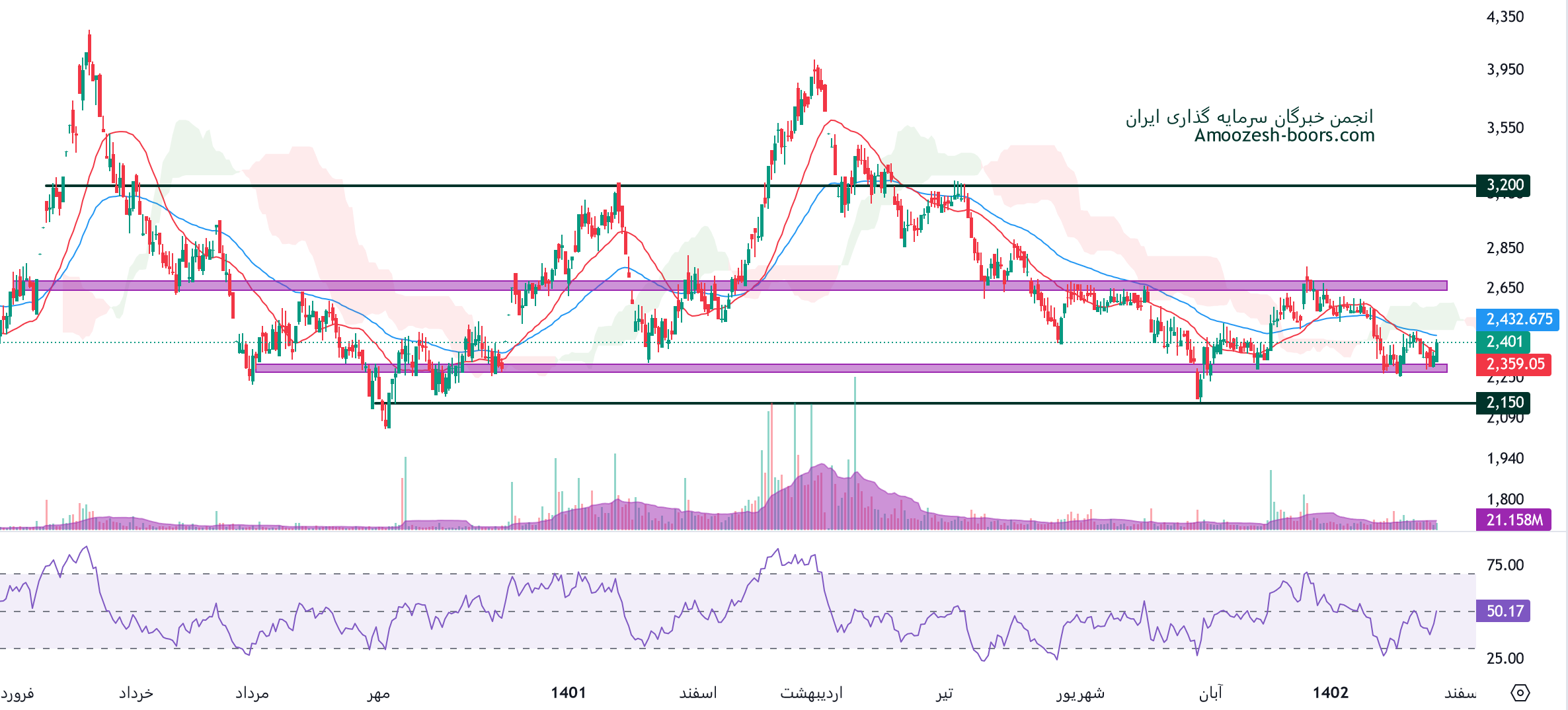 در صورت متعادل شدن جو بازار قیمت پتانسیل برگشت داشته که در این صورت مقاومت های غزر به ترتیب 2700 و 3200 ریال در نظر گرفته خواهند شد.