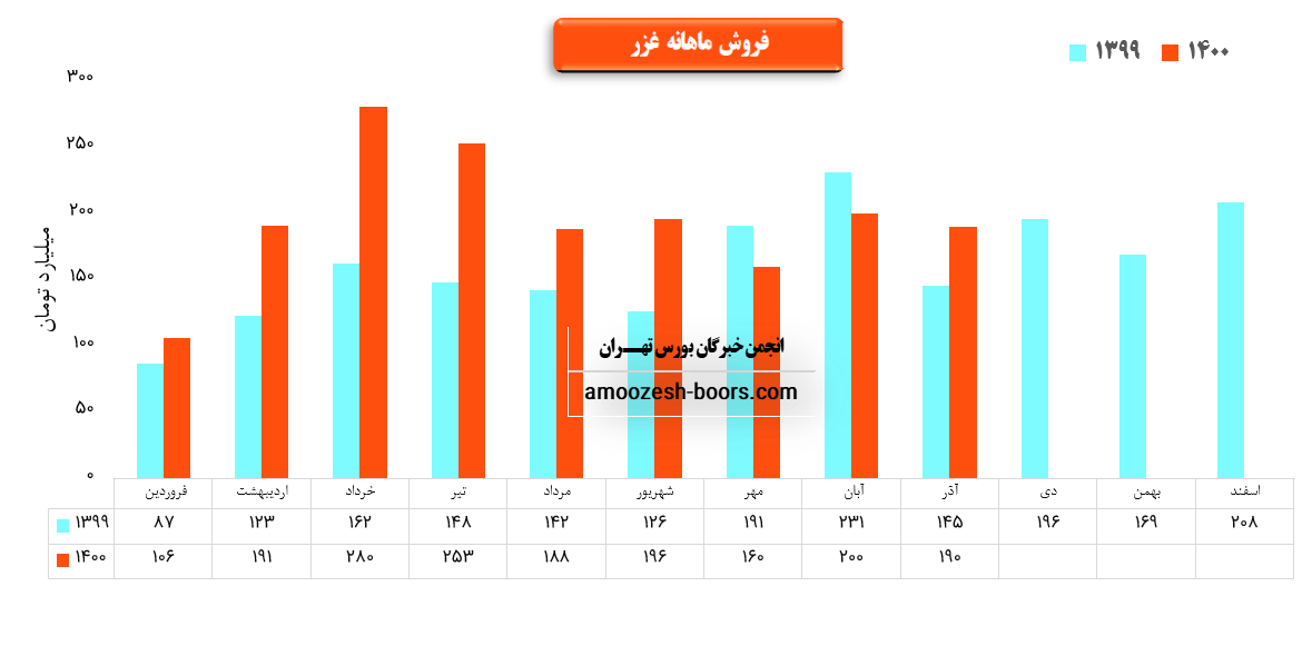 فروش نماد غزر: ۱۷۶۳ میلیارد تومان که نسبت به دوره مشابه گذشته ۳۳% افزایش یافته است.