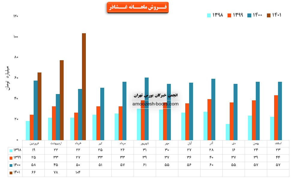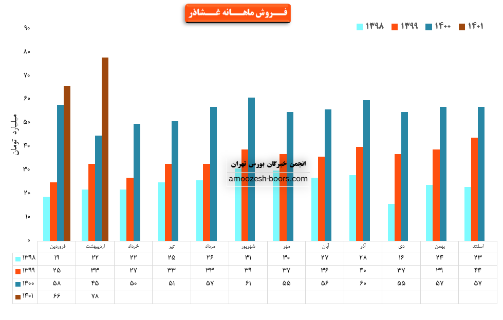 فروش نماد غشاذر: 656 میلیارد تومان که نسبت به دوره مشابه گذشته 54% افزایش یافته است.