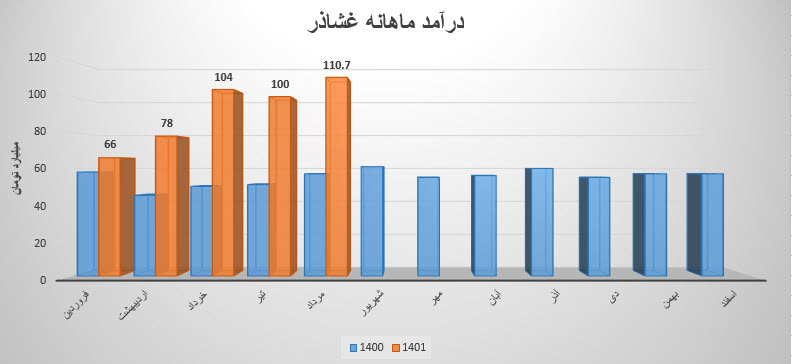 نماد غشاذر در گزارش فعالیت تیر ماه خود ، مبلغ 99.9 میلیارد تومان درآمد داشته که نسبت به ماه قبل 4% کاهش و نسبت به میانگین ماه های قبل 21% افزایش داشته است.
