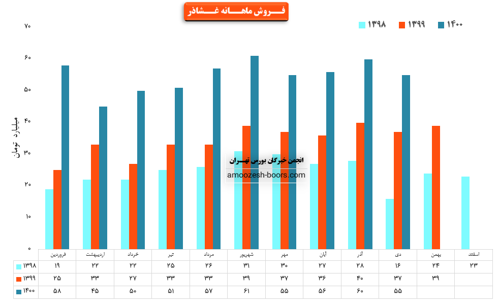 فروش نماد غشاذر: ۴۸۶ میلیارد تومان که نسبت به دوره مشابه گذشته ۵۹% افزایـش یافته است.