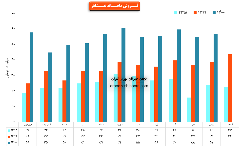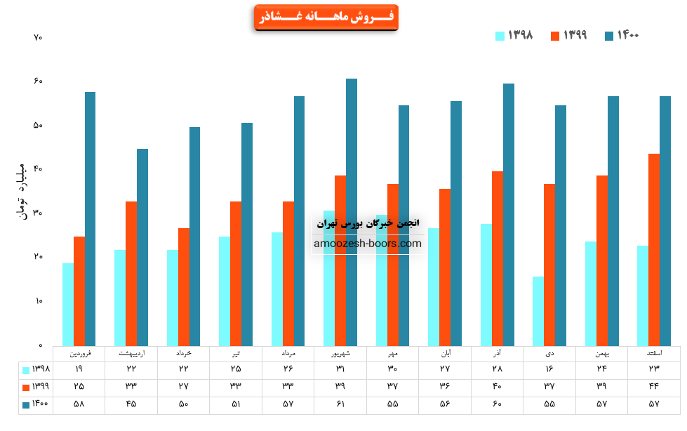 سهم غشاذر در خصوص فروش 6 ماهه دوم سال 1400 مبلغ 418 میلیارد تومان پیشبینی فروش داشته است که در مقایسه با فروش 6 ماهه نخست سال 1400 رشد 33 درصدی فروش پیشبینی شده است