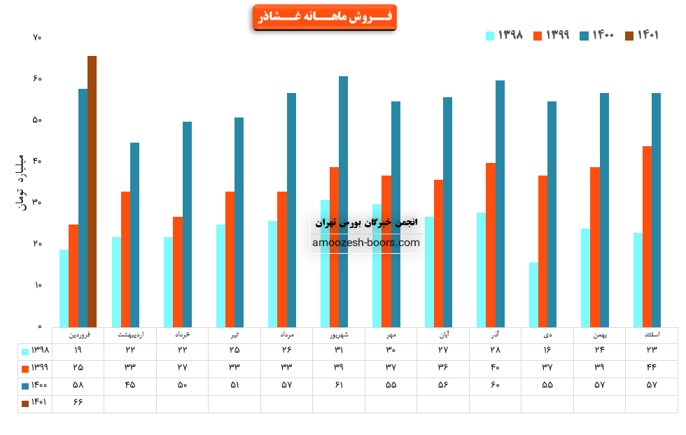 نماد غشاذر در فروردین بیش از 4.6 هزار تن از محصولات خود را به فروش رسانده است که در مقایسه با حجم فروش ماه گذشته با 12% رشد حجم فروش روبرو شده است.