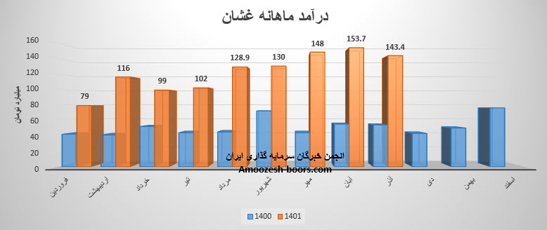 مجموع درآمد نماد غشان طی عملکرد 8 ماهه نسبت به مدت مشابه سال قبل 139% رشد داشته است.