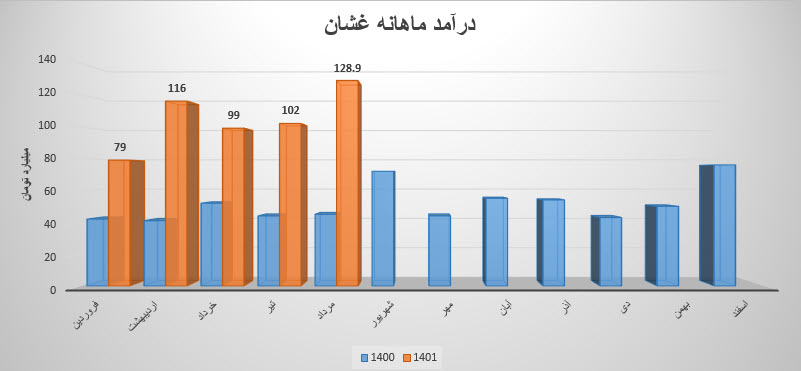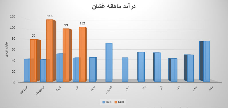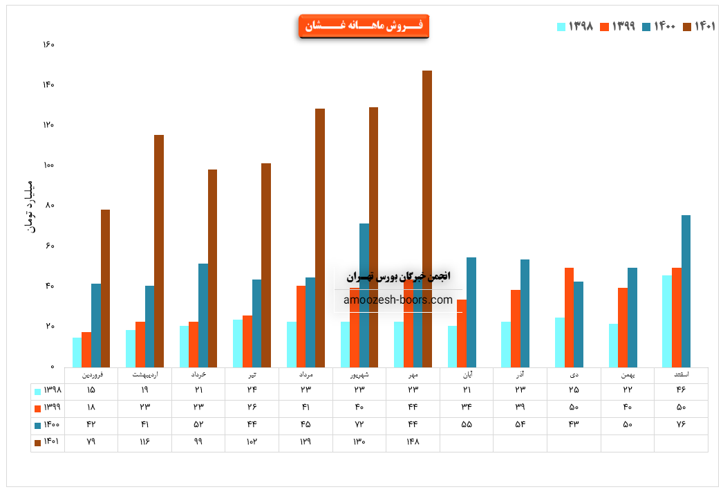 فروش نماد غشان: 646 میلیارد تومان که نسبت به دوره مشابه گذشته 118% افزایش یافته است.