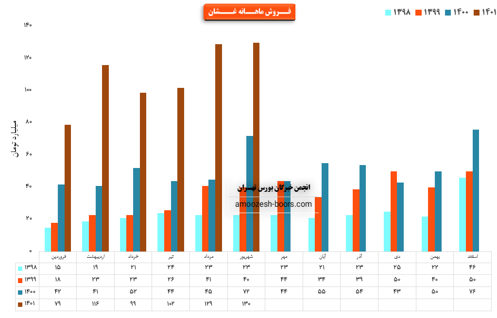 فروش نماد غشان: 294 میلیارد تومان که نسبت به دوره مشابه گذشته 117% افزایش یافته است.