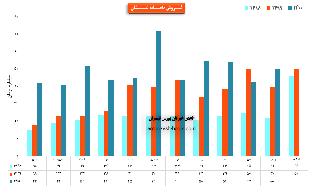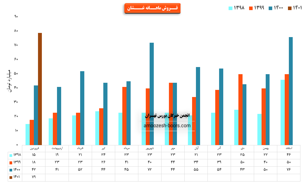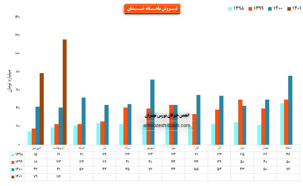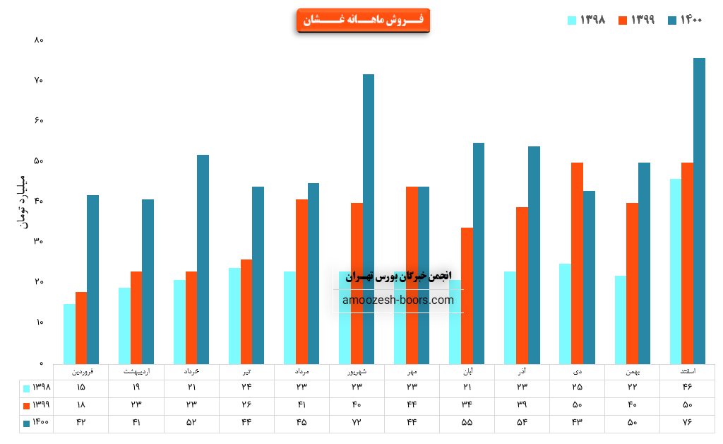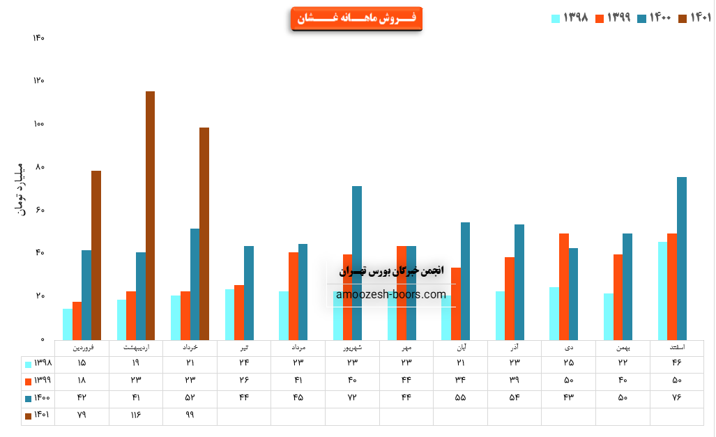 فروش نماد غشان: 621 میلیارد تومان که نسبت به دوره مشابه گذشته 47% افزایش یافته است.