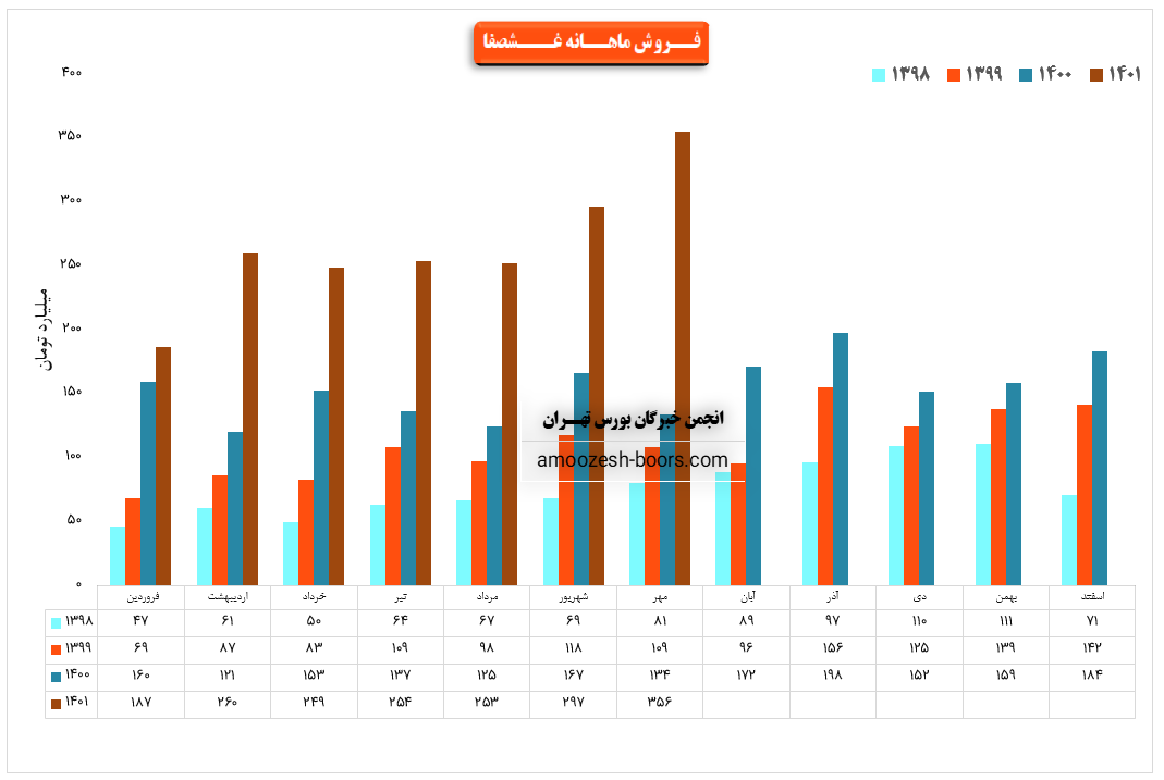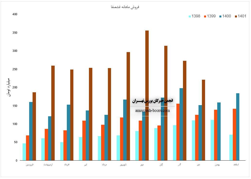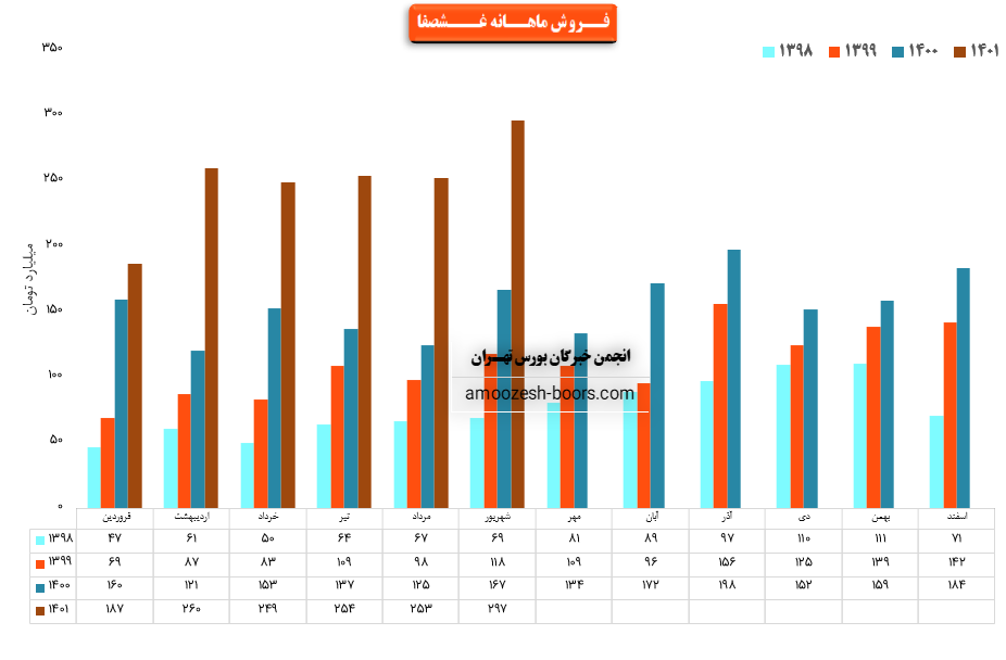 فروش نماد غشصفا: 1501 میلیارد تومان که نسبت به دوره مشابه گذشته 73% افزایش یافته است.