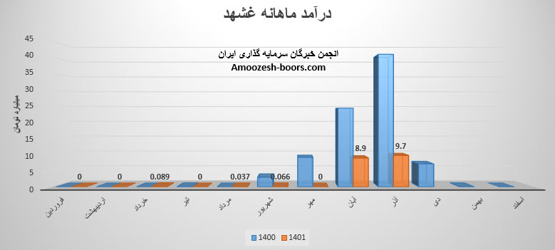 شرکت شهد ایران (غشهد) در شناسایی درآمد ریتم مشخصی نداشته و عموما گزارشات آن سالانه مورد بررسی قرار میگیرد اما با اینحال در بررسی عملکرد آذر 1401 به درآمد 9.7 میلیارد تومانی رسیده است. این رقم در مقایسه با میانگین ماهانه 753% ، نسبت به ماه قبل 9% افزایشی بوده است و در مقایسه با مدت مشابه سال افت 76% درصدی داشته و مجموع درآمد نماد غشهد طی عملکرد 9 ماهه نسبت به مدت مشابه سال قبل 76% افت داشته است.