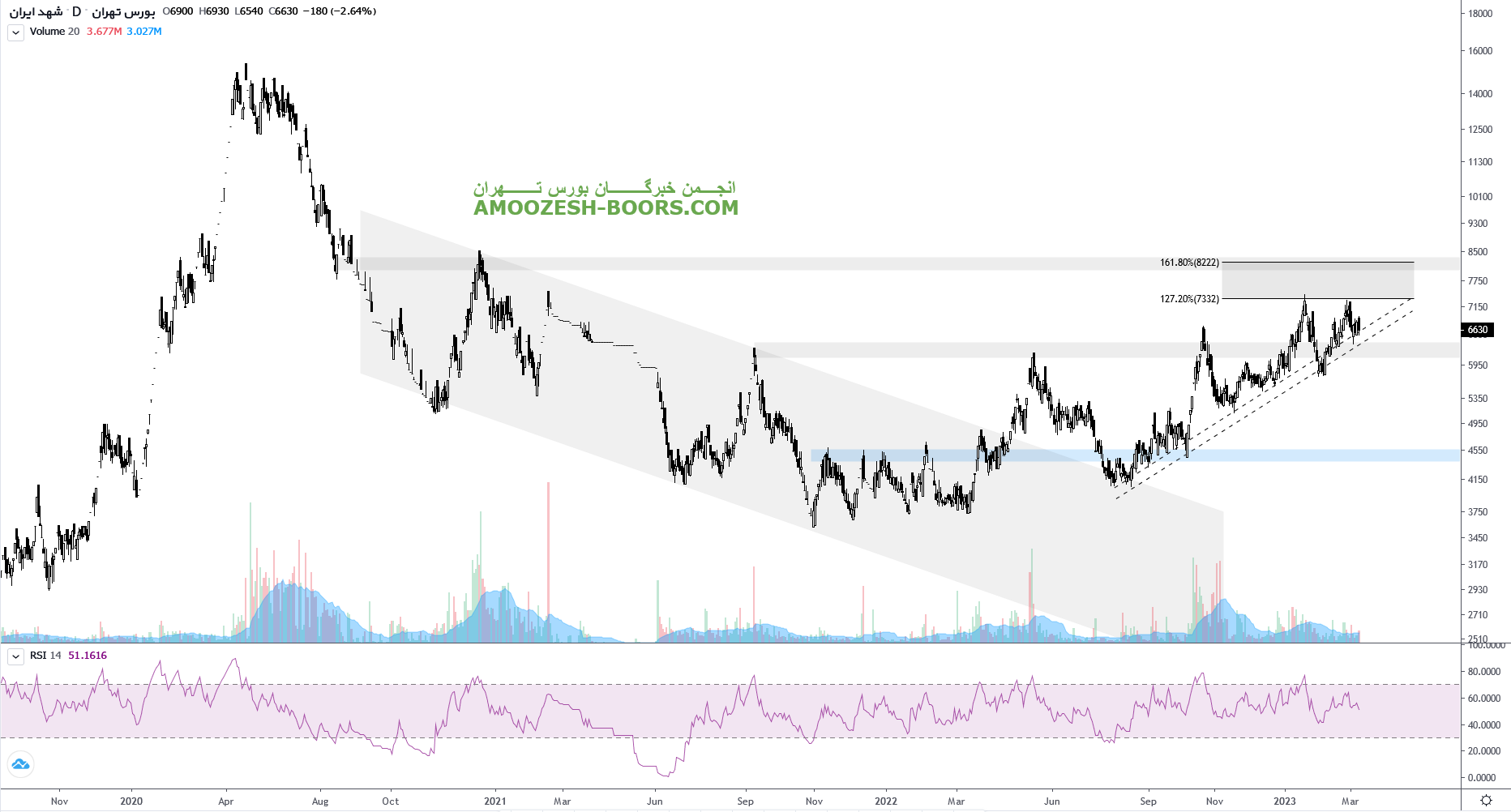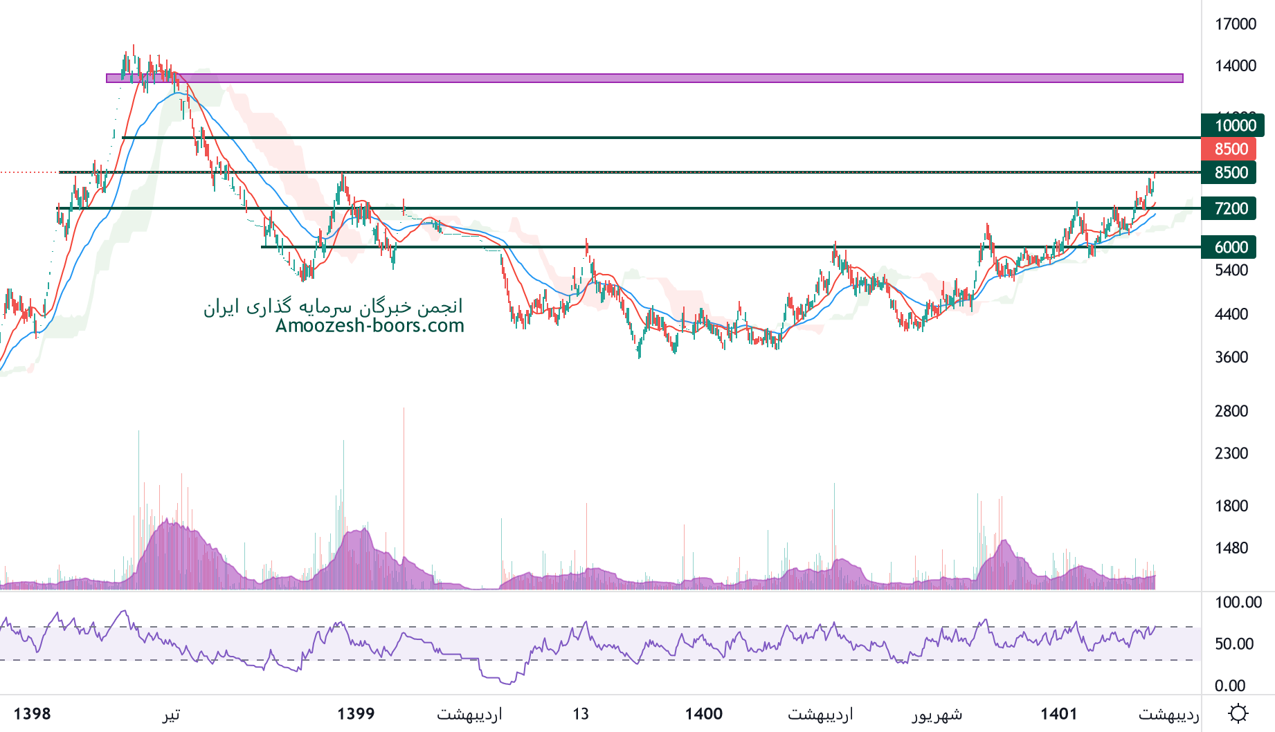 قیمت سهم پس از شکست مقاومت مهم ناحیه ۶۳۰ تومان اکنون درون یک الگو در حال فشرده سازی و استراحت می باشد لذا در صورت شکست و عبور از مقاومت ناحیه ۷۳۰ تومان میتواند رشد خود را تا ناحیه مقاومتی ۸۳۰ تومان نیز ادامه دهد. همچنین در صورت از دست رفتن حمایت ناحیه 630 تومان حمایت بعدی سهم غشهد ناحیه ۴۵۰ تومان در نظر گرفته شده است.