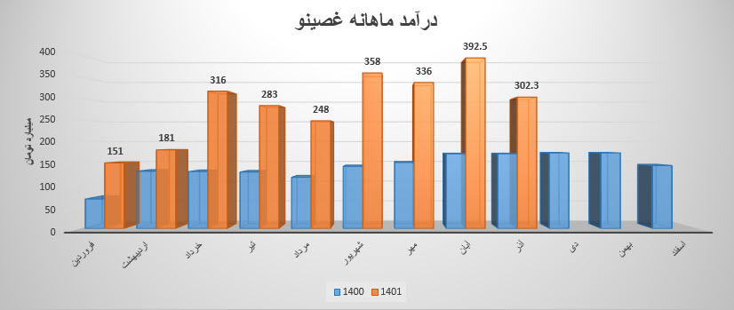 مجموع درآمد نماد غصینو طی عملکرد 9 ماهه نسبت به مدت مشابه سال قبل 111% رشد داشته است.