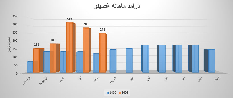 غصینو در شهریور ماه سال جاری حدود بیش از 6/900/000 کیلوگرم از محصولات خود را به فروش رساند که میزان در مقایسه با حجم فروش ماه گذشته حدود 47% افزایش پیدا کرده است.