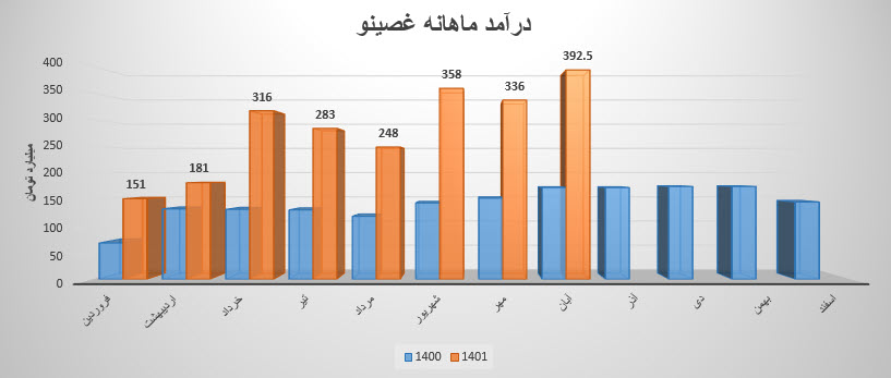 همچنین غصینو با ثبت فروش 1538 میلیارد تومانی در پایان شش ماهه ابتدایی سال توانست حدود 55% از پیشبینی فروش سالانه خود را محقق سازد
