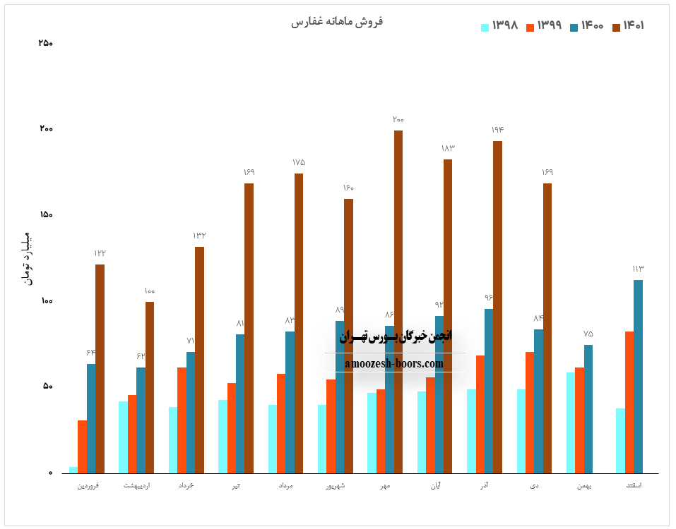 فروش نماد غفارس: 1435 میلیارد تومان که نسبت به دوره مشابه گذشته 101% افزایش یافته است.