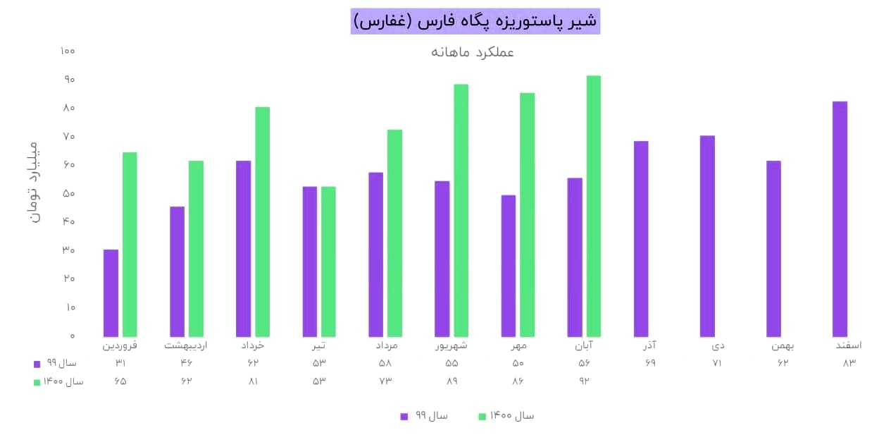 شرکت شیر پاستوریزه پگاه فارس نسبت به دوره 1 ماهه مشابه سال قبل 65% افزایش درآمد داشته است.