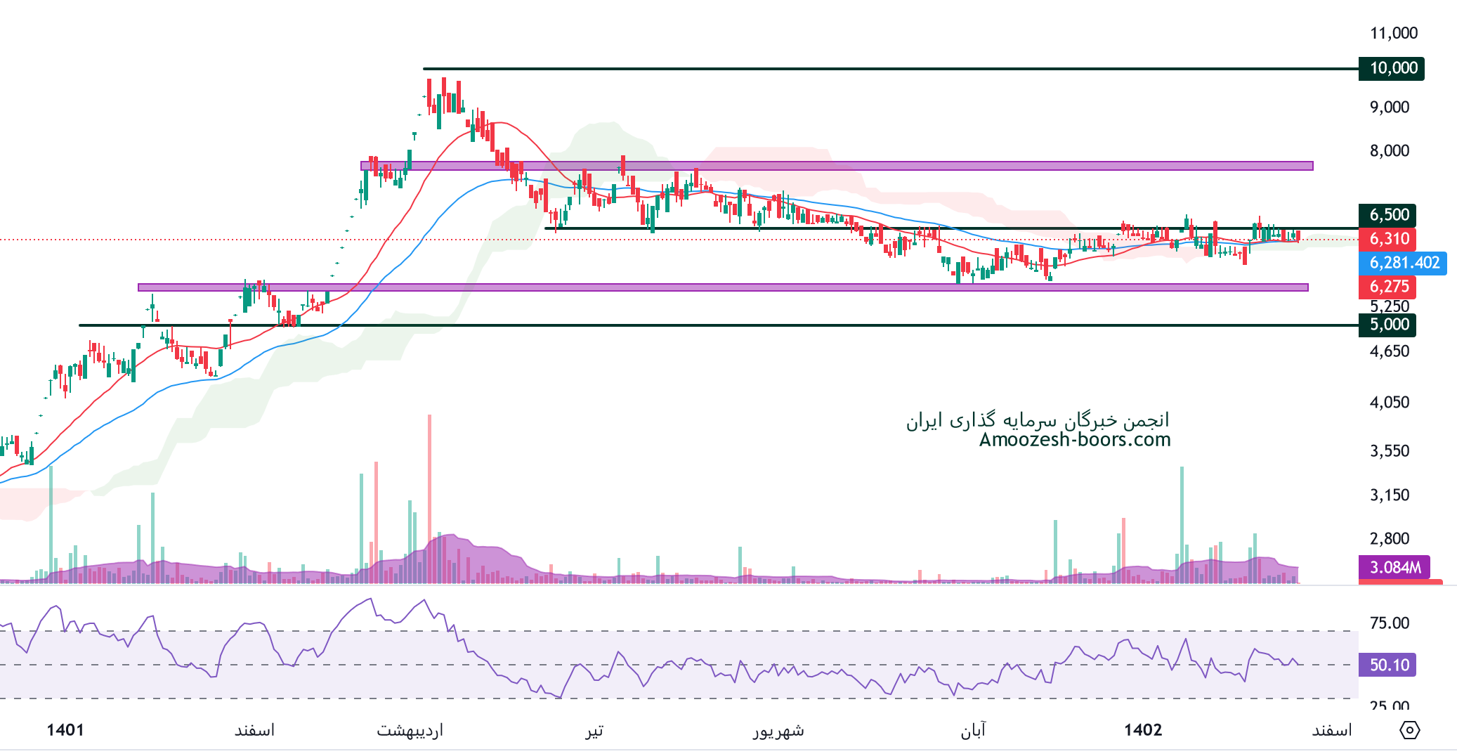در صورت شکست مقاومت 1250 و تثبیت بالای آن، میتوان انتظار ادامهی روند صعودی و رشد قیمت سهم تا مقاومت بعدی در محدودهی 1500 تومان را داشت.