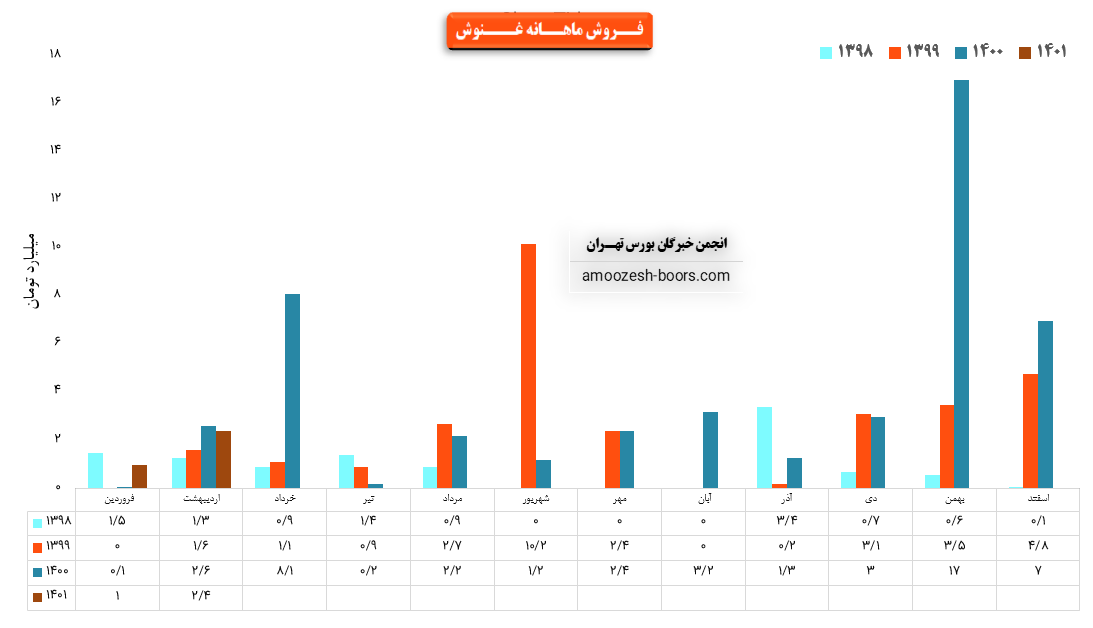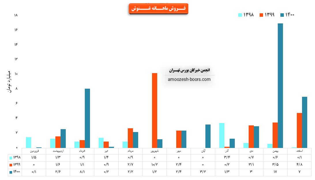 فروش نماد غنوش: 49 میلیارد تومان که نسبت به دوره مشابه گذشته 59% افزایش یافته است.