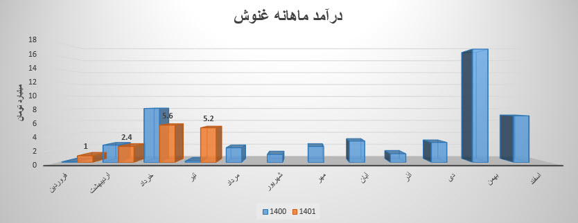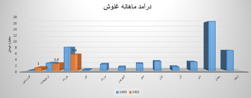 درآمد نماد غنوش در این دوره نسبت به ماه قبل 8% کاهش و نسبت به میانگین ماه های قبل 72% افزایش داشته است.
