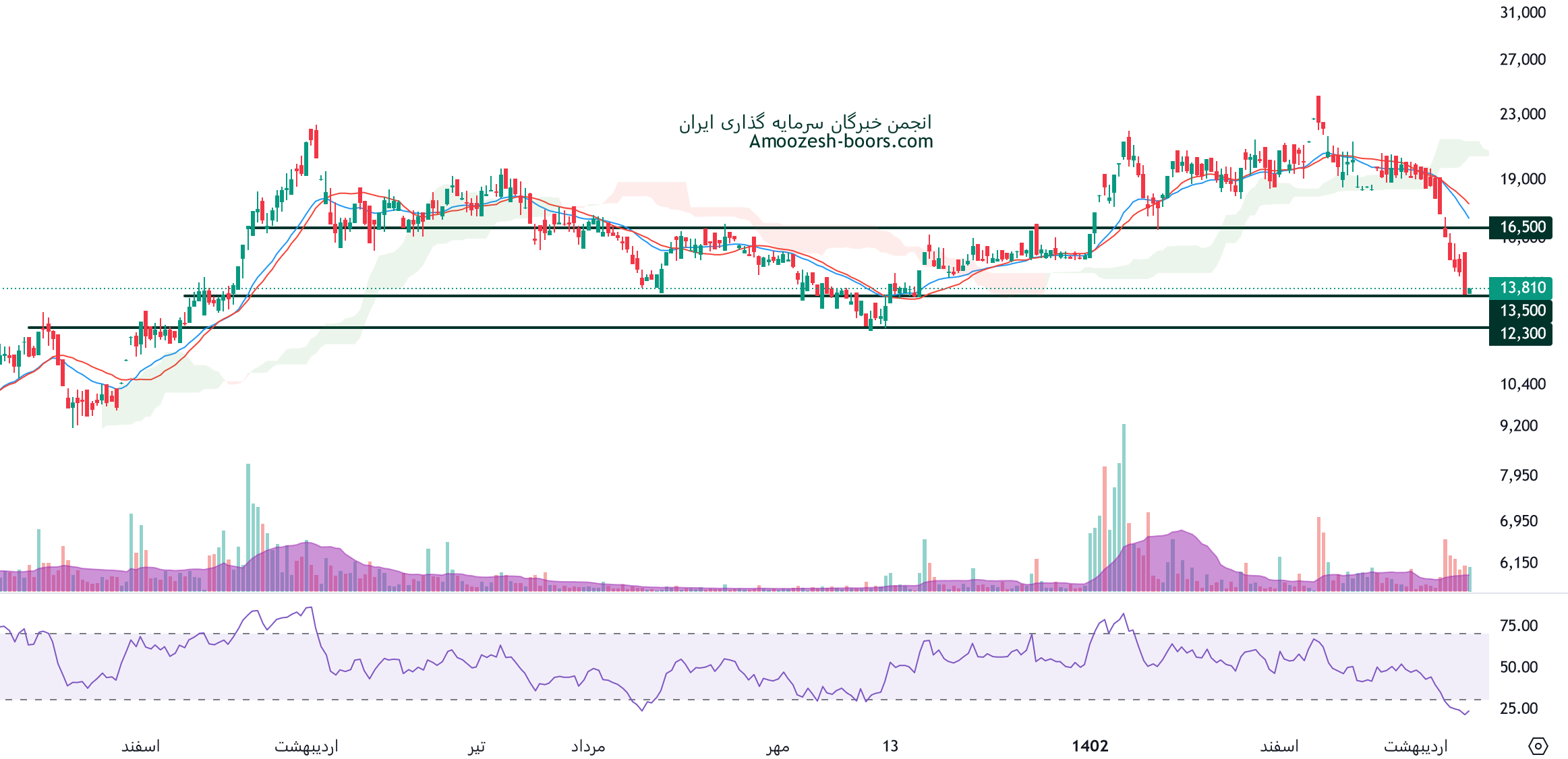 حمایت غپآذر 15000 ریال: این سطح بهعنوان یک نقطه حیاتی برای جلوگیری از اصلاح بیشتر قیمت عمل میکند، اگر قیمت به زیر این سطح نفوذ کند، انتظار میرود که حمایت بعدی در محدوده 13500 ریال قرار داشته باشد.