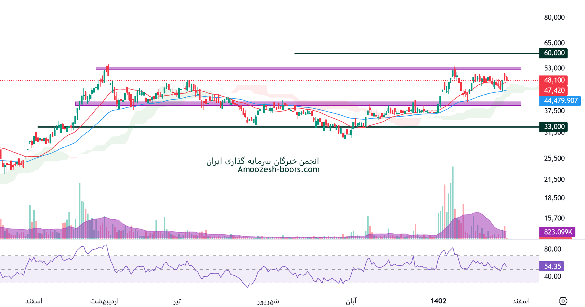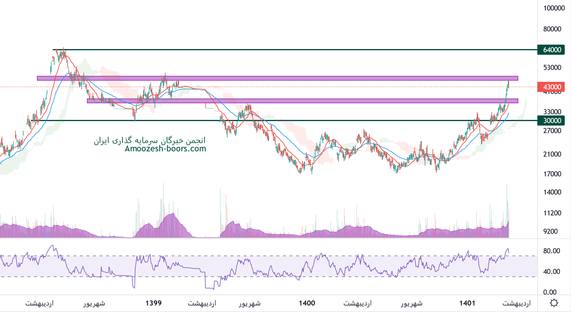 در صورت ورود قیمت به فاز اصلاحی اولین حمایت سهم غپآذر 40000 ریال در نظر گرفته خواهد شد.