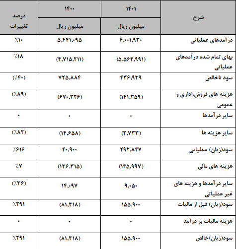 و مجموعا در گزارش فصل بهار خود به ازای هر سهم 113 ریال سود محقق کرده است و این در حالیست که در مدت مشابه سال قبل شرکت به ازای هر سهم مبلغ 59 ریال زیان محقق کرده بود.