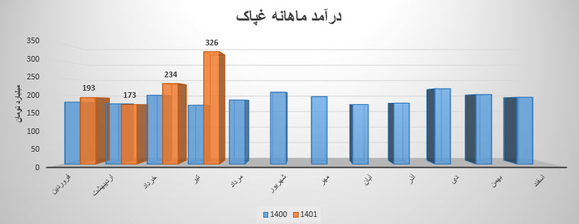 نماد غپاک در دوره تیر ماه مبلغ 326.1 میلیارد تومان درآمد داشته است که نسبت به ماه قبل 39% افزایش و نسبت به میانگین ماه های قبل 63% افزایش داشته است.