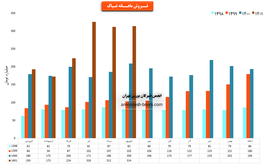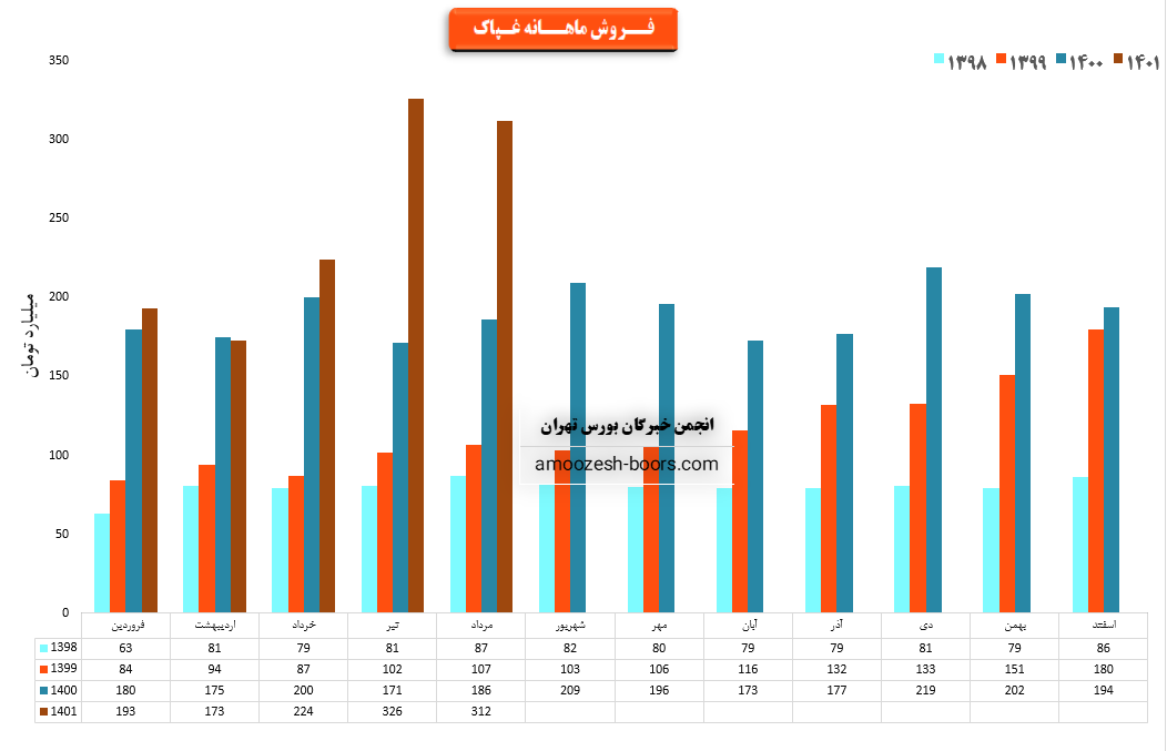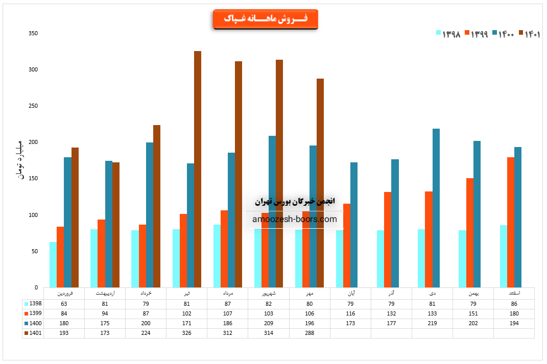 فروش نماد غپاک: 1467 میلیارد تومان که نسبت به دوره مشابه گذشته 32% افزایش یافته است.