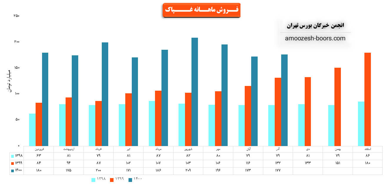 نماد غپاک در آذر 1400 مبلغ 177 میلیارد تومان درامد داشته که این میزان نسبت به ماه گذشته 2% و همچنین نسبت به مدت مشابه سال گذشته 34% رشد پیدا کرده است!