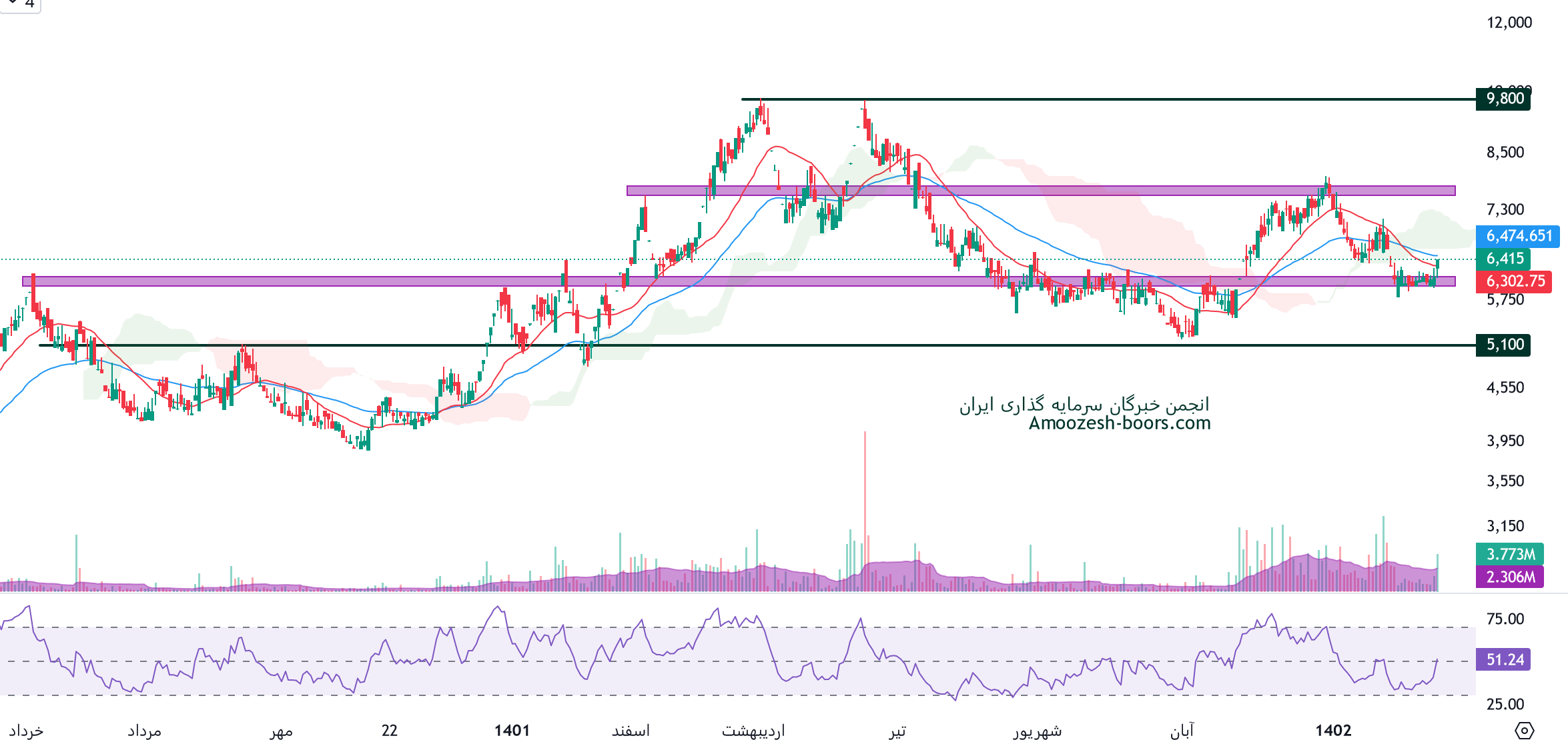بررسی رفتار سهم در محدودههای قیمتی ذکر شده، برای شناسایی سیگنالهای خرید یا فروش ضروری است.