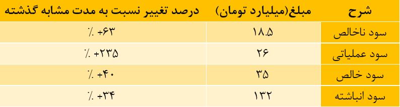 و طی عملکرد 4 ماهه سال مالی نسبت به مدت مشابه سال قبل 78% رشد داشته است