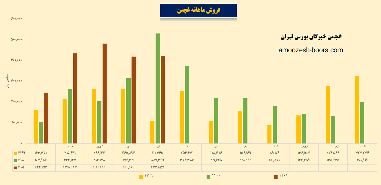 نماد غچین در اولین ماه سال مالی به فروش 244 میلیارد ریالی رسیده است در مرداد این عدد 435 میلیارد ریال شد وشهریور 482 میلیارد ریال بوده و مهر 420 میلیارد ریال شده است شرکت مجتمع کشت و صنعت چین چین طی عملکرد 1 ماهه منتهی به 1400/07/30 نسبت به دوره 1 ماهه مشابه سال قبل 33% افزایش داشته است.