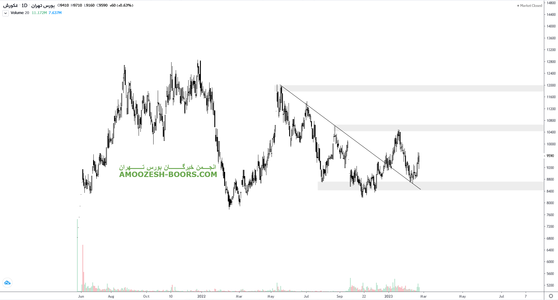 نماد غکوروش محدوده مقاومتی 18000 و 20000 ریال را پیش رو دارد و حمایت های سهم 14500 و 12500 ریال خواهند بود.