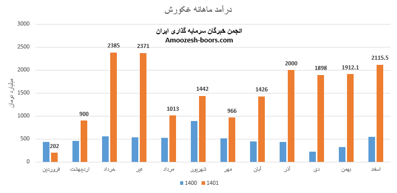 نماد غکورش با تکرار درآمد ماه گذشته به رقم 1912.1 میلیارد تومانی دست یافته است . درآمد بهمن ماه سهم غکورش نسبت به متوسط ماهانه 31 درصد و نسبت به مدت مشابه 478 درصد افزایش را تجربه نموده است .