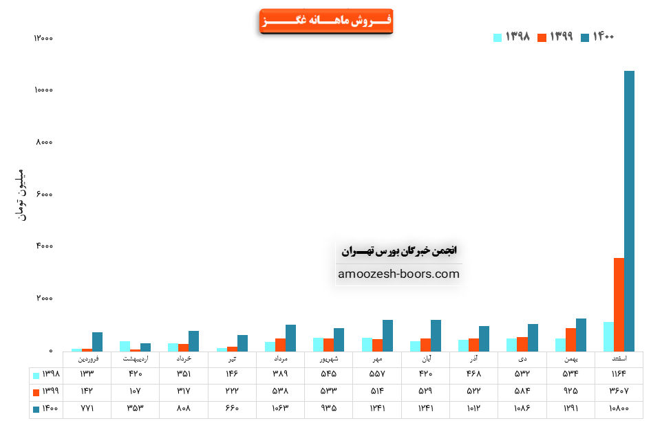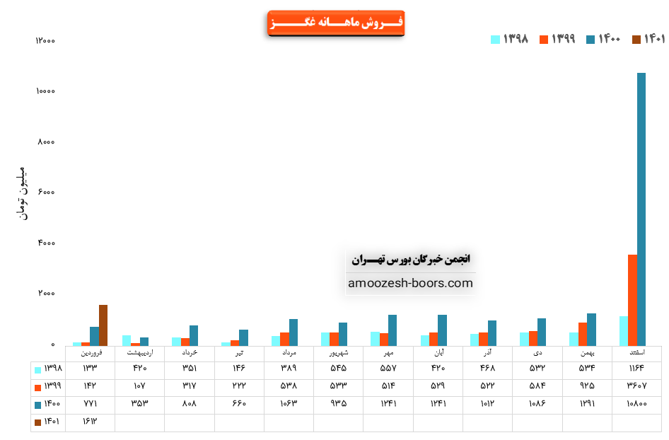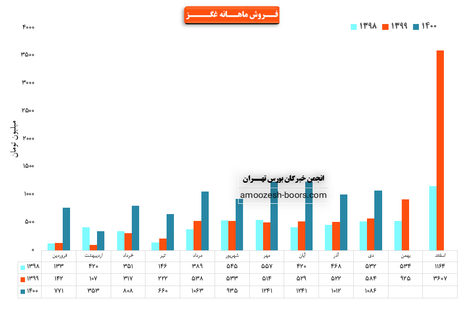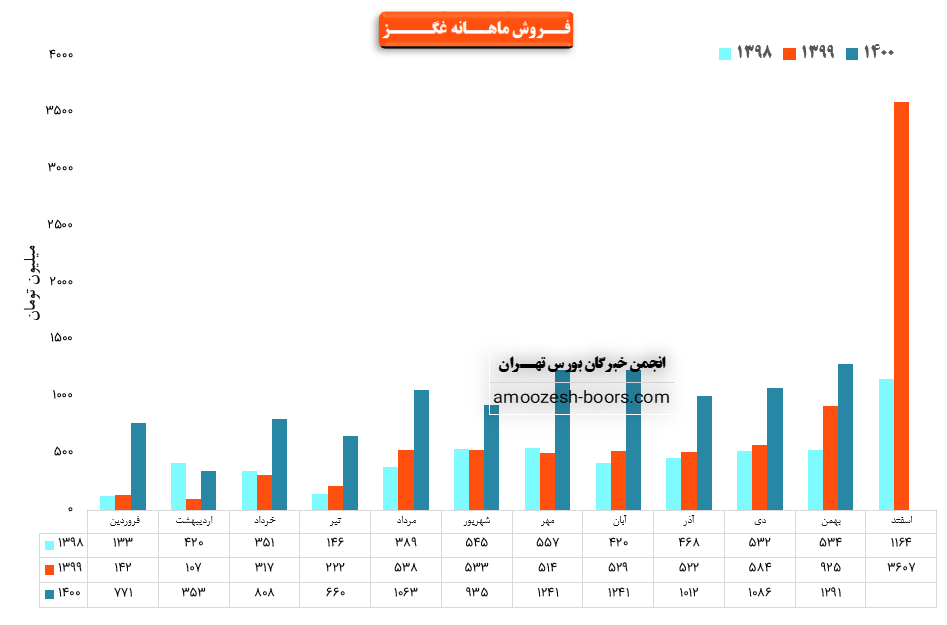 فروش نماد غگز: 8 میلیارد تومان که نسبت به دوره مشابه گذشته 148% افزایش یافته است.