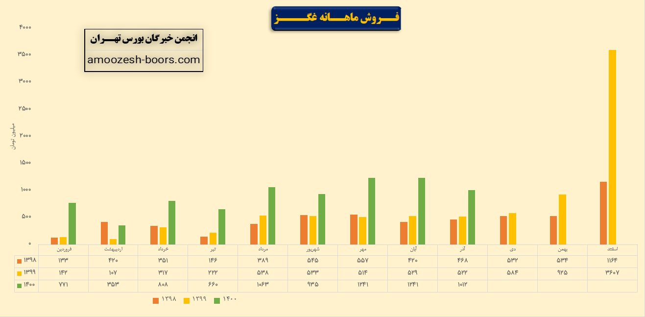 درآمد نماد غگز در این دوره نسبت به ماه قبل 33% افزایش و نسبت به میانگین ماه های قبل 40% افزایش داشته است.