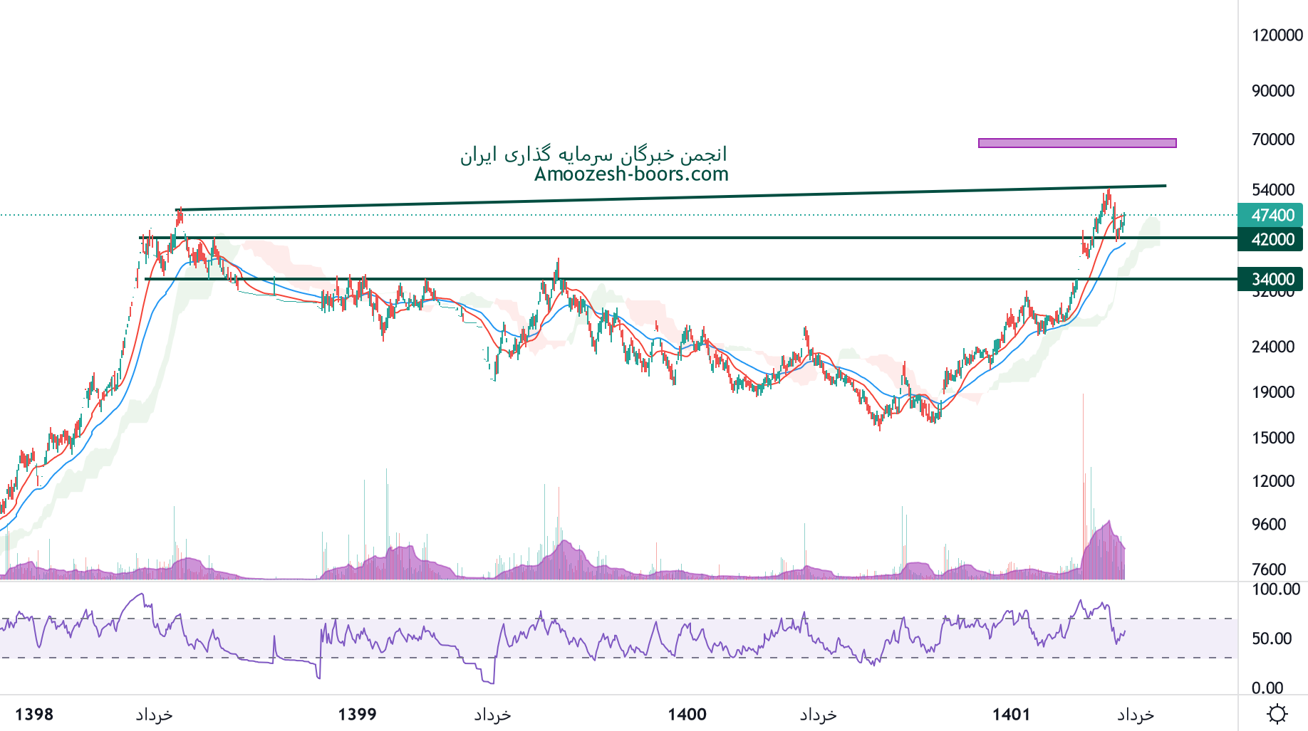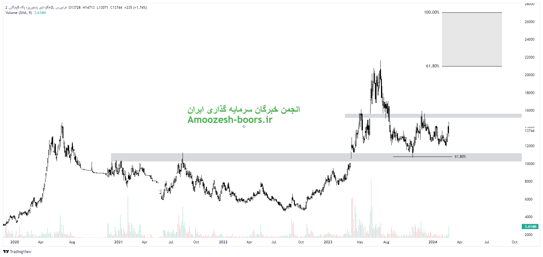 در بررسی نمودار تکنیکال غگلپا قیمت سهم محدوده حمایتی 36000 ریال را دارا میباشد، در صورت تثبیت و بیس سازی قیمت در این منطقه، تارگت های نماد غگلپا به ترتیب 50000 ریال و 70000 ریال خواهد بود، همچنین در صورت از دست رفتن محدوده حمایتی مذکور، حمایت بعدی 30000 ریال خواهد بود.