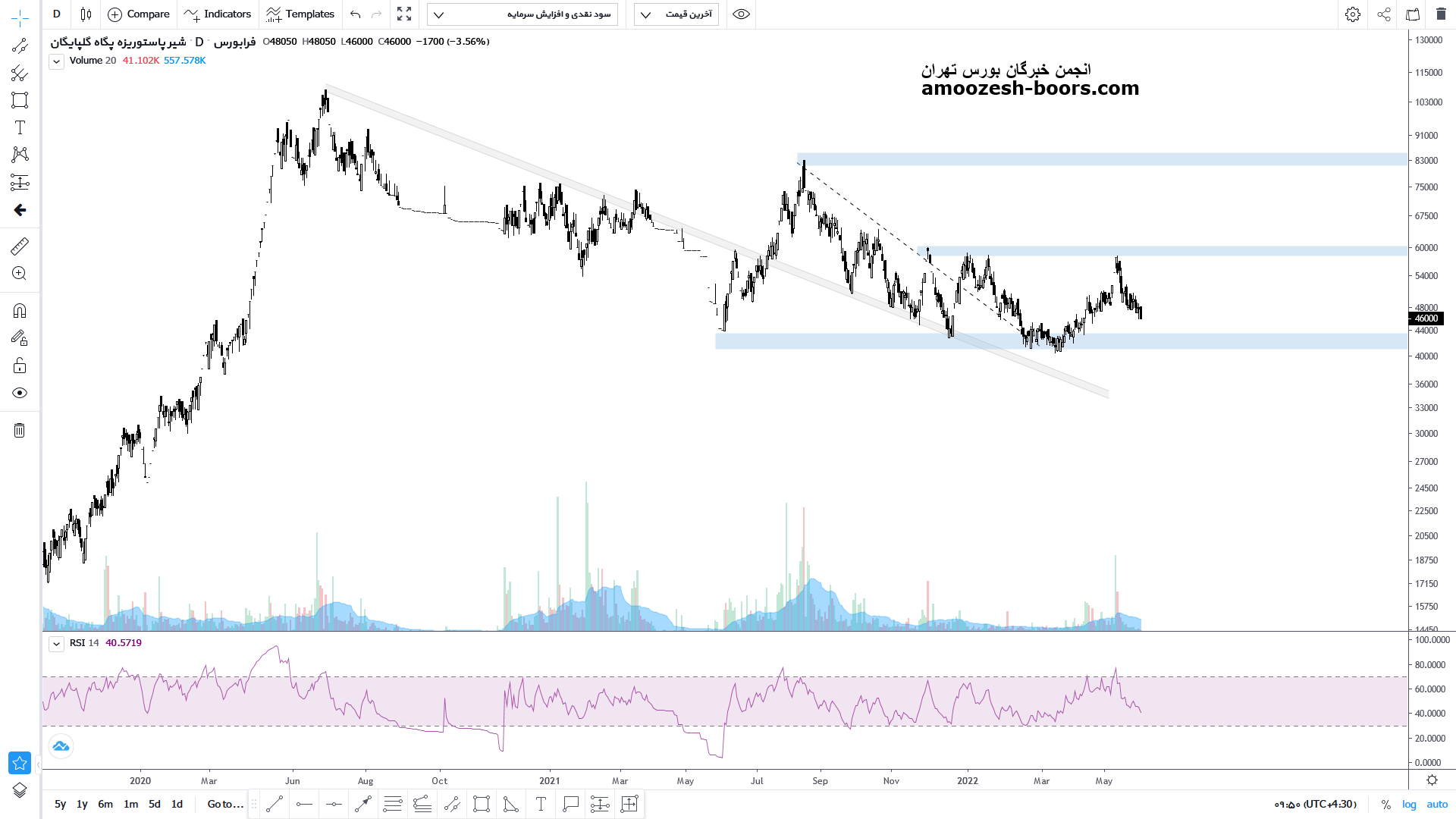 نماد غگلپا در حال حاضر حمایت 34000 ریال را دارا میباشد، در صورت تثبیت قیمت، حرکت سهم تا 40000 ریال دور از ذهن نخواهد بود، همچنین در صورت از دست رفتن این حمایت، حمایت بعدی 30000 ریال در نظر گرفته خواهد شد که در اینصورت حد ضرر نماد غگلپا فعال میگردد.