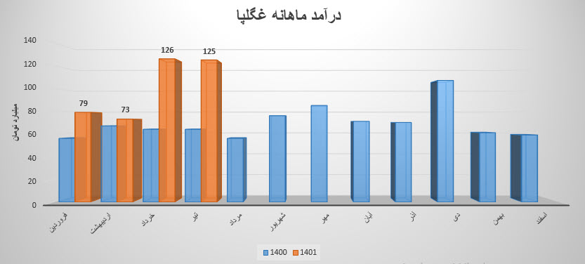 نماد غگلپا نسبت به دوره 1 ماهه مشابه سال قبل 99% افزایش درآمد داشته است.