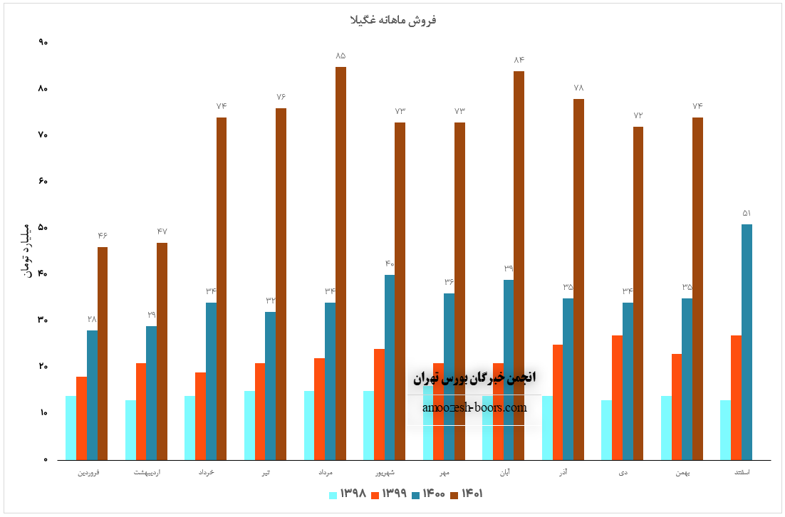 ضمنا نماد غگیلا در بهمن مجموعاً بیش از 2719 تن از محصولات خود را به فروش رساند که این میزان در مقایسه با حجم فروش ماه گذشته 5 درصد افزایش پیدا کرده است .