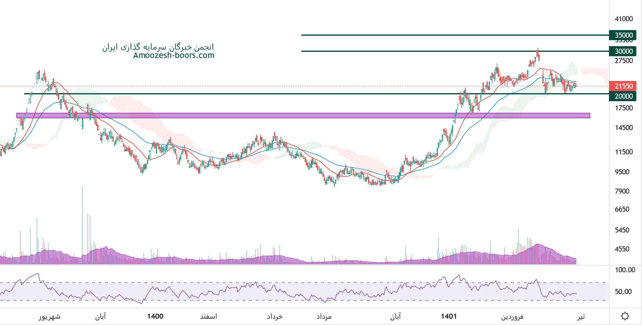 نماد غگیلا در حال نوسان روی سطح حمایت 20000 ریال میباشد و در محدوده کم ریسکی قرار دارد، در صورتی که این نماد موفق به بیس سازی در این منطقه شود، تارگت غگیلا 35000 ریال ارزیابی میگردد، همچنین در صورت از دست رفتن سطح حمایتی سهم غگیلا، حمایت بعدی محدوده 16000 ریال خواهد بود، در صورت تمایل به ورود به حد ضرر پابیند باشید.