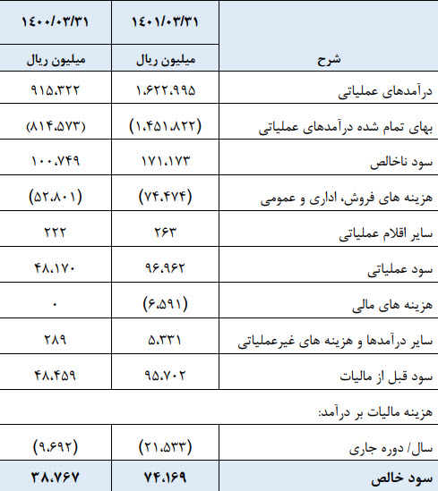 سود عملیاتی: 21 میلیارد تومان که نسبت به دوره مشابه گذشتـه 36% افزایش یافته است.