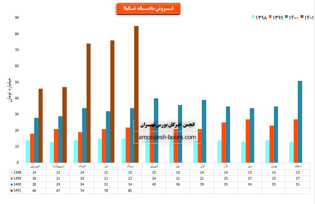 فروش نماد غگیلا: 419 میلیارد تومان که نسبت به دوره مشابه گذشته 56% افزایش یافته است.