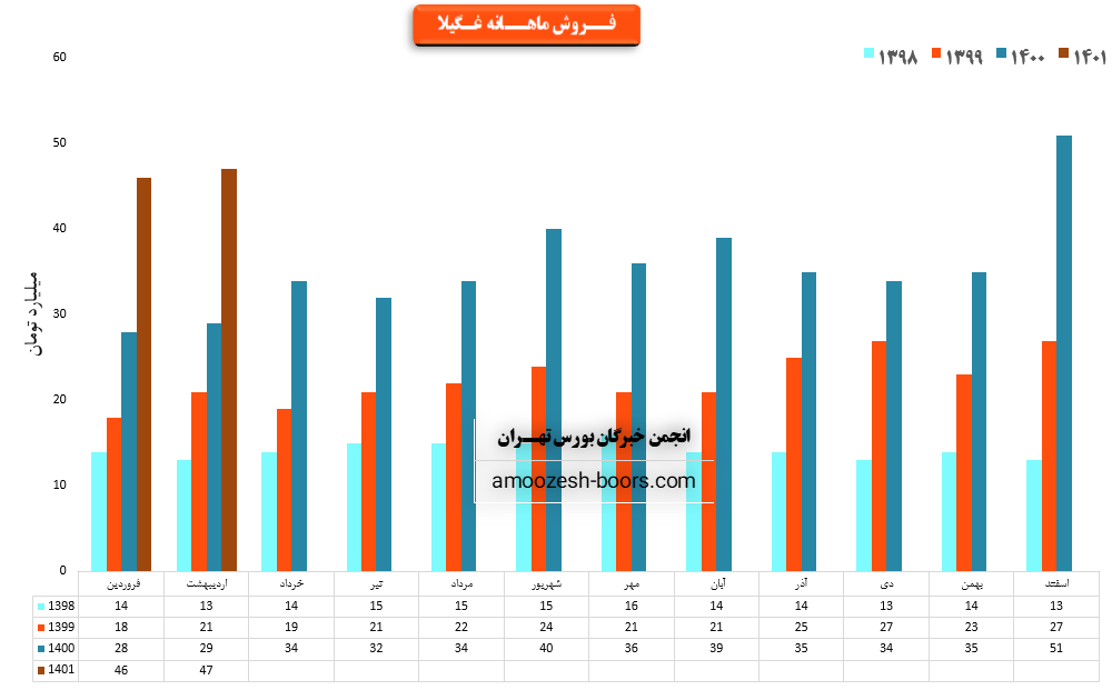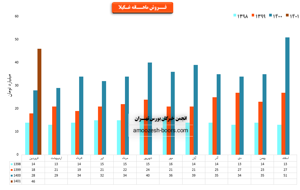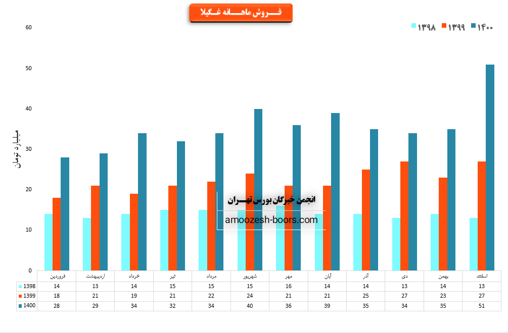 رشد نرخ فروش محصولات سهم غگیلا نیز دلیل اصلی افزایش درامد ماهانه شرکت شده است.